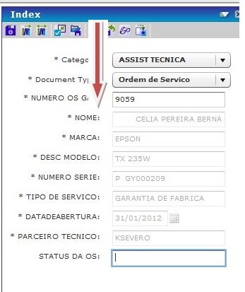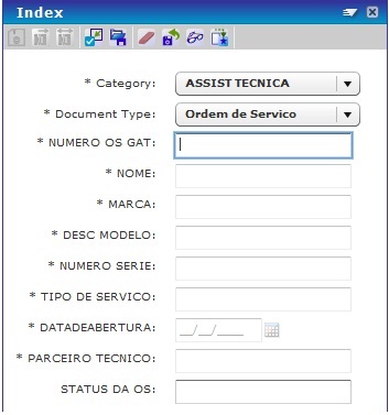 É preciso fornecer somente o número da Ordem de Serviço. Todas as demais informações necessárias para a indexação são auto-populadas com os dados trazidos automaticamente da integração com o sistema de gestão ERP.